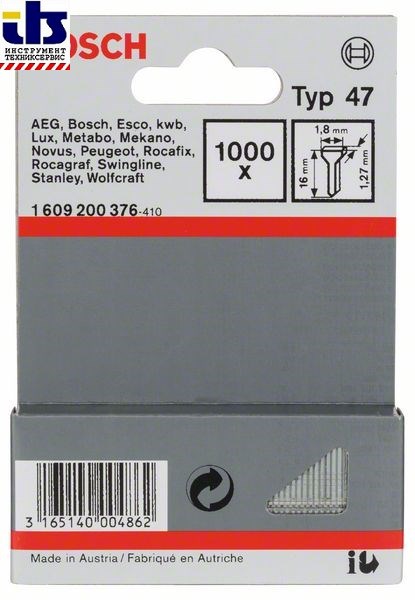 Bosch Гвоздь, тип 47 1,8 x 1,27 x 16 mm [1609200376]